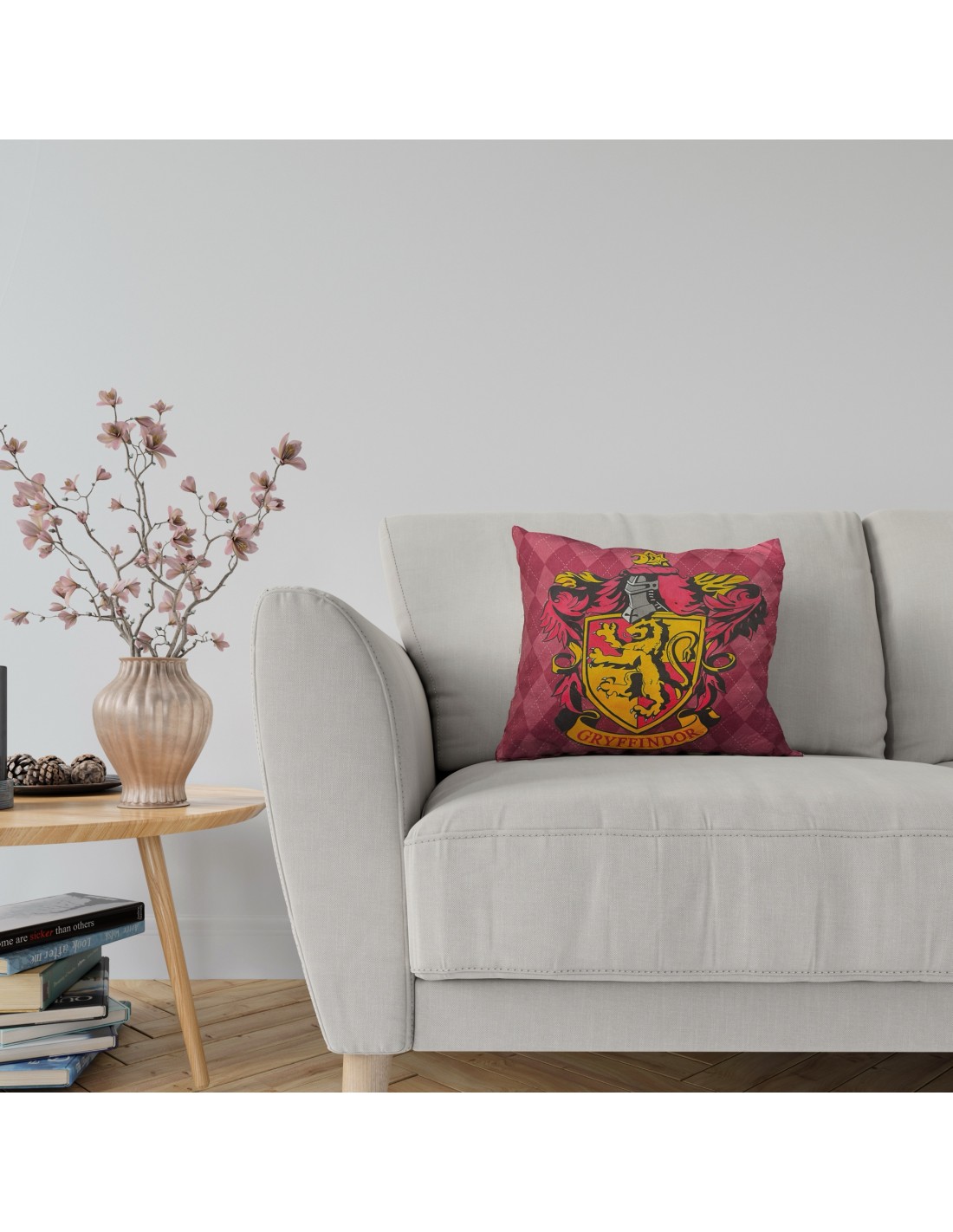El emblema distintivo de Gryffindor, el león rugiente, adorna este cojín, capturando la esencia de la valentía y el coraje que caracterizan a esta casa. Los detalles finos y la calidad de la impresión hacen que este cojín sea un elemento decorativo impresionante para cualquier fan de Harry Potter.