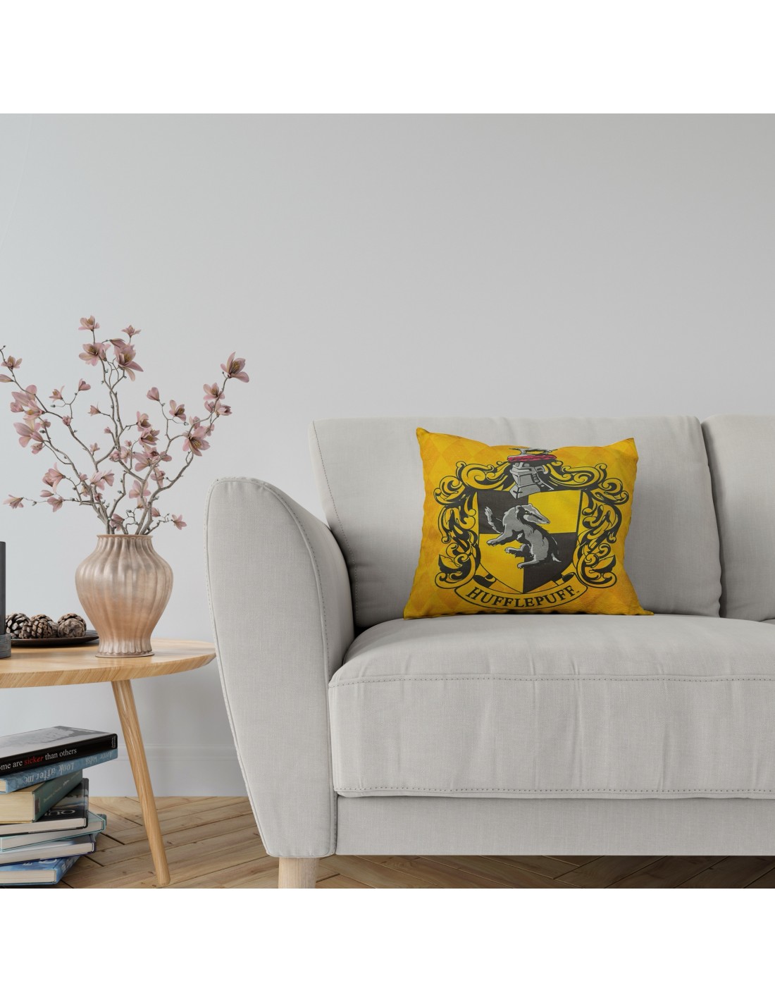 El emblema distintivo de Hufflepuff, el tejón, se destaca en este cojín, capturando la esencia de la lealtad y la amistad que caracterizan a esta casa. Los detalles finos y la calidad de la impresión hacen que este cojín sea una adición encantadora a cualquier espacio.