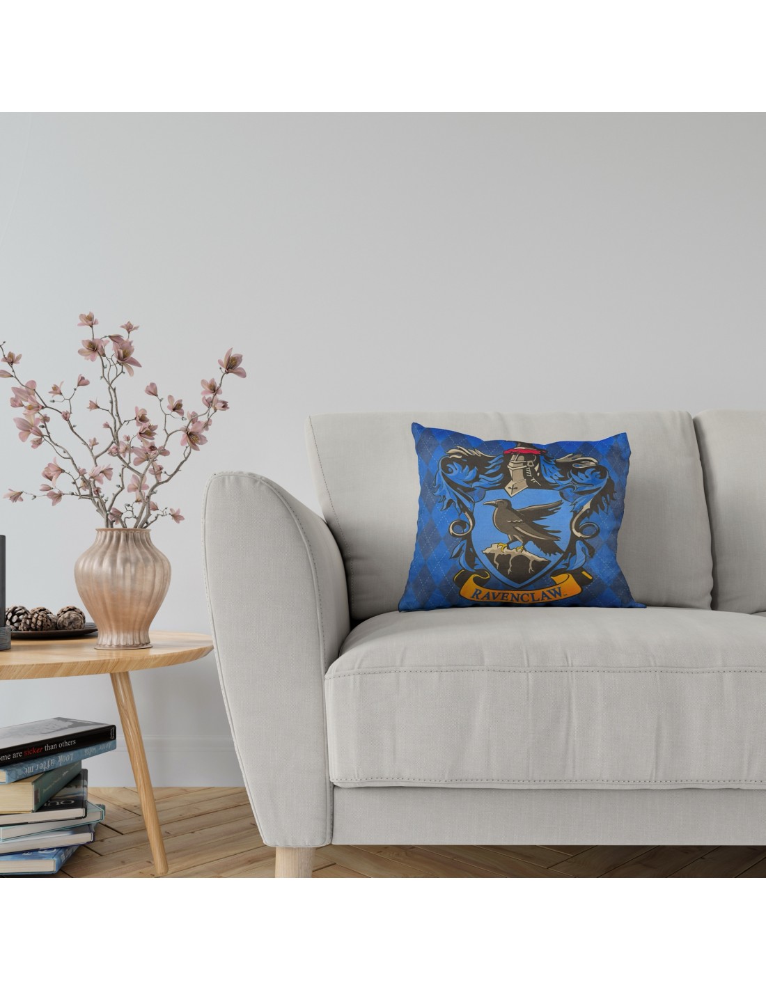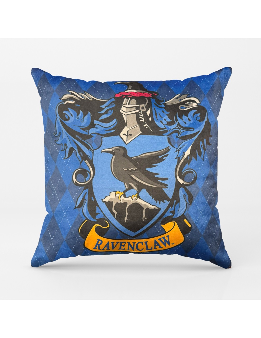 El distintivo emblema de Ravenclaw, el águila, se destaca en este cojín, capturando la esencia de la sabiduría y la inteligencia que caracterizan a esta casa. Los detalles finos y la calidad de la impresión hacen que este cojín sea una adición elegante a cualquier espacio.