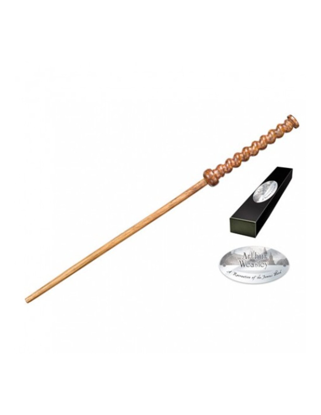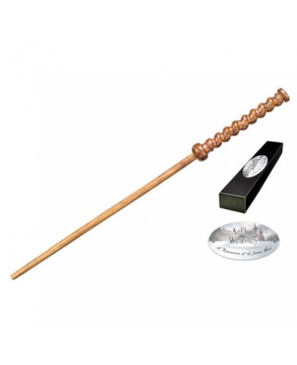 La varita de Arthur Weasley, fabricada por Noble Collection, es una réplica exacta del objeto utilizado en las películas de Harry Potter. Esta varita mágica está hecha a mano y presenta una cuidadosa atención al detalle en su acabado. Mide aproximadamente 34 cm de longitud y está hecha de resina de alta calidad. La varita viene con una elegante caja coleccionable con la insignia de Arthur Weasley, lo que la hace un regalo perfecto para los fanáticos de Harry Potter y coleccionistas de varitas mágicas