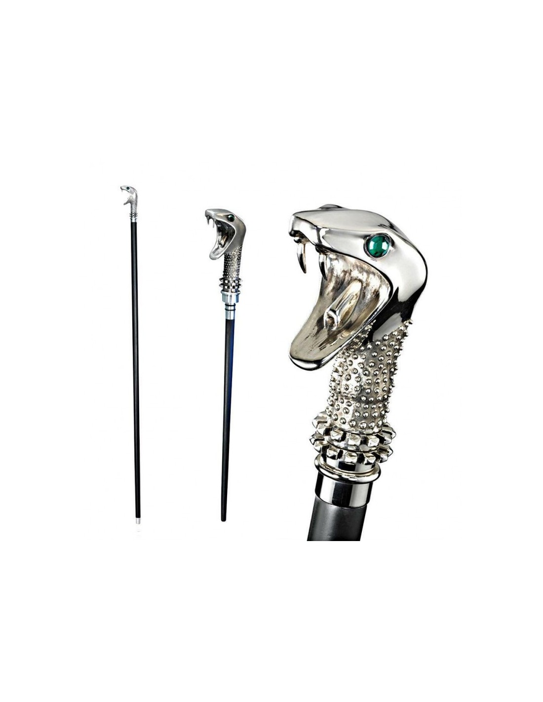 La varita está escondida dentro del bastón y mide 18″ de largo. Baño de plata y engastado con cristales genuinos.