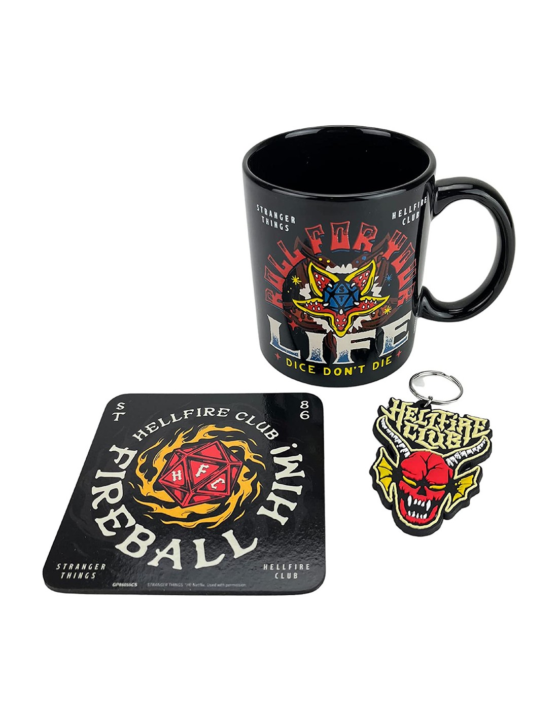 Desde posavasos con diseños exclusivos hasta un llavero temático, esta caja regalo tiene todo lo que necesitas para mostrar tu pasión por Stranger Things. Además, la taza con el logo Hellfire te recordará los momentos más intensos de la serie con cada sorbo.