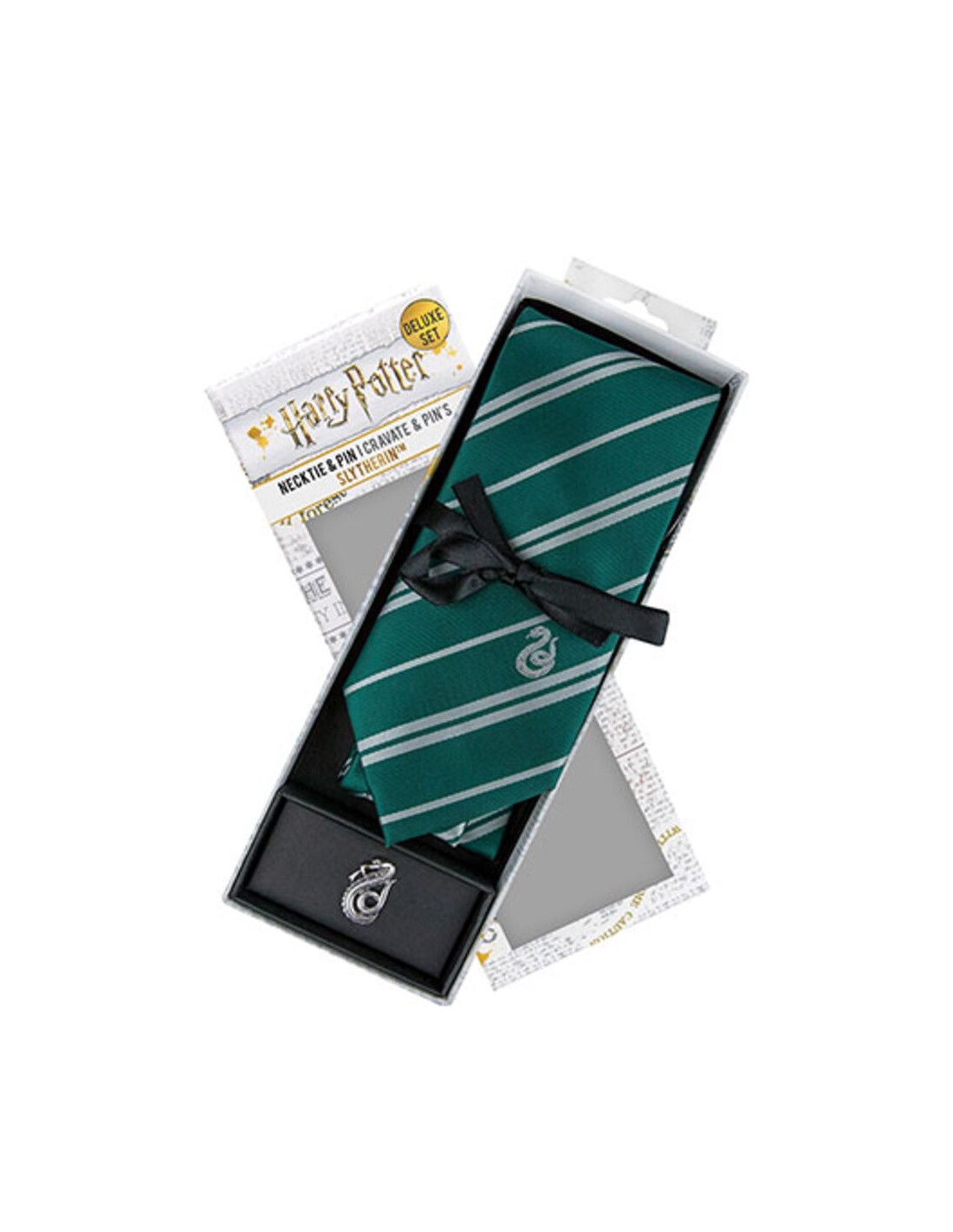Adquiere la corbata Deluxe Slytherin con broche en nuestra tienda en línea. Ofrecemos productos auténticos de Harry Potter para los verdaderos aficionados. Haz clic aquí para obtener tu corbata y añadir un toque de magia y elegancia a tu estilo.