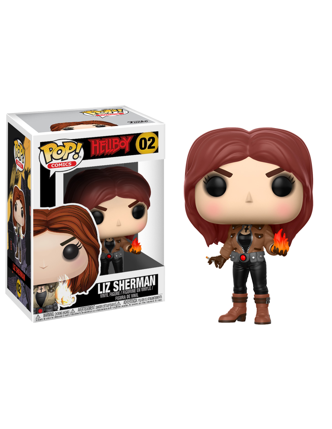 La figura Funko POP de Liz Sherman muestra todos los detalles distintivos del personaje, desde su vestuario hasta sus características faciales y poderes. Los colores y elementos están cuidadosamente representados para garantizar su autenticidad y reconocimiento instantáneo.