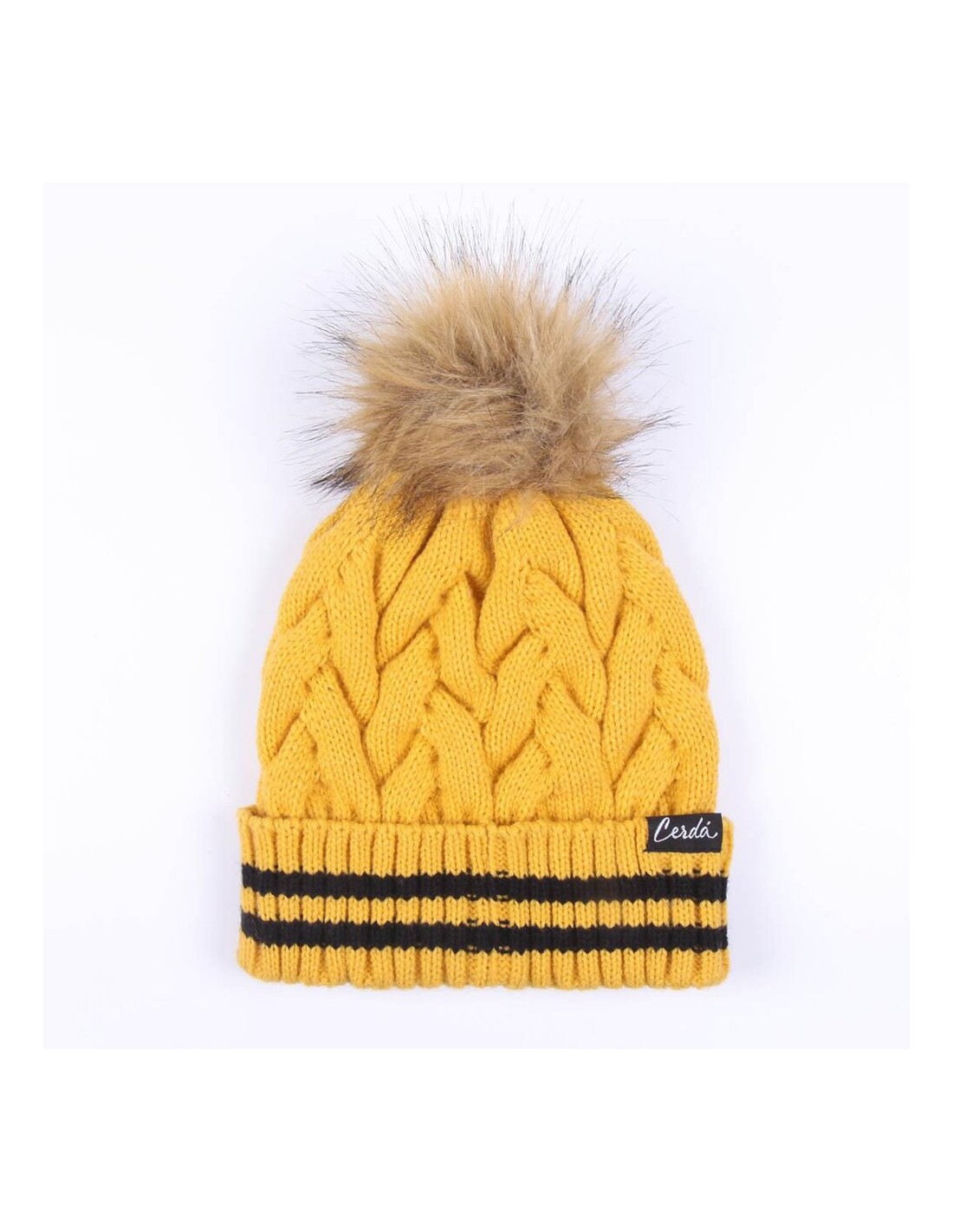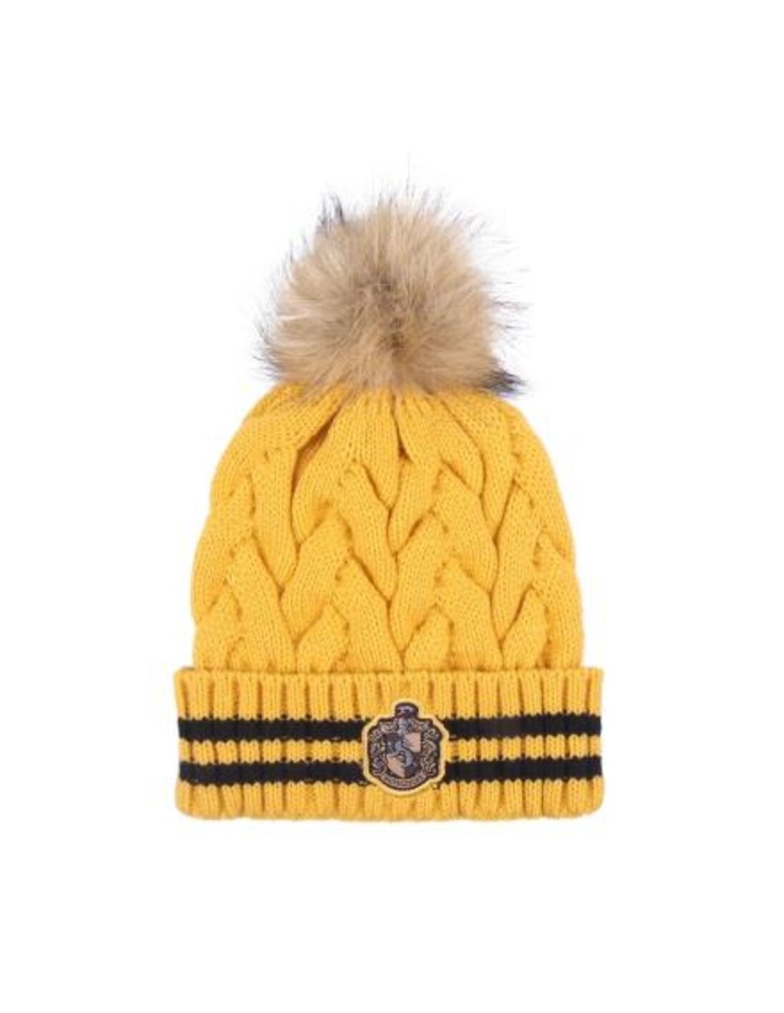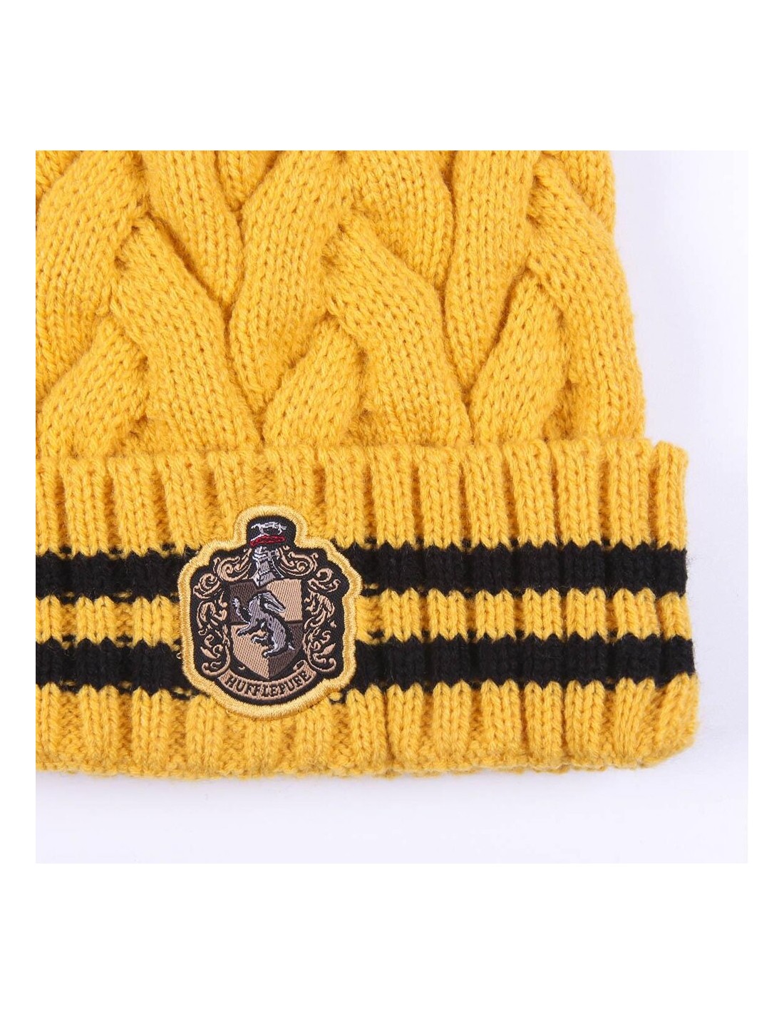 El pompón en la parte superior del gorro agrega un toque de encanto y diversión. Además, el diseño de tricot presenta un patrón único que refleja el espíritu distintivo de Hufflepuff, haciendo que este accesorio sea tanto elegante como distintivo.