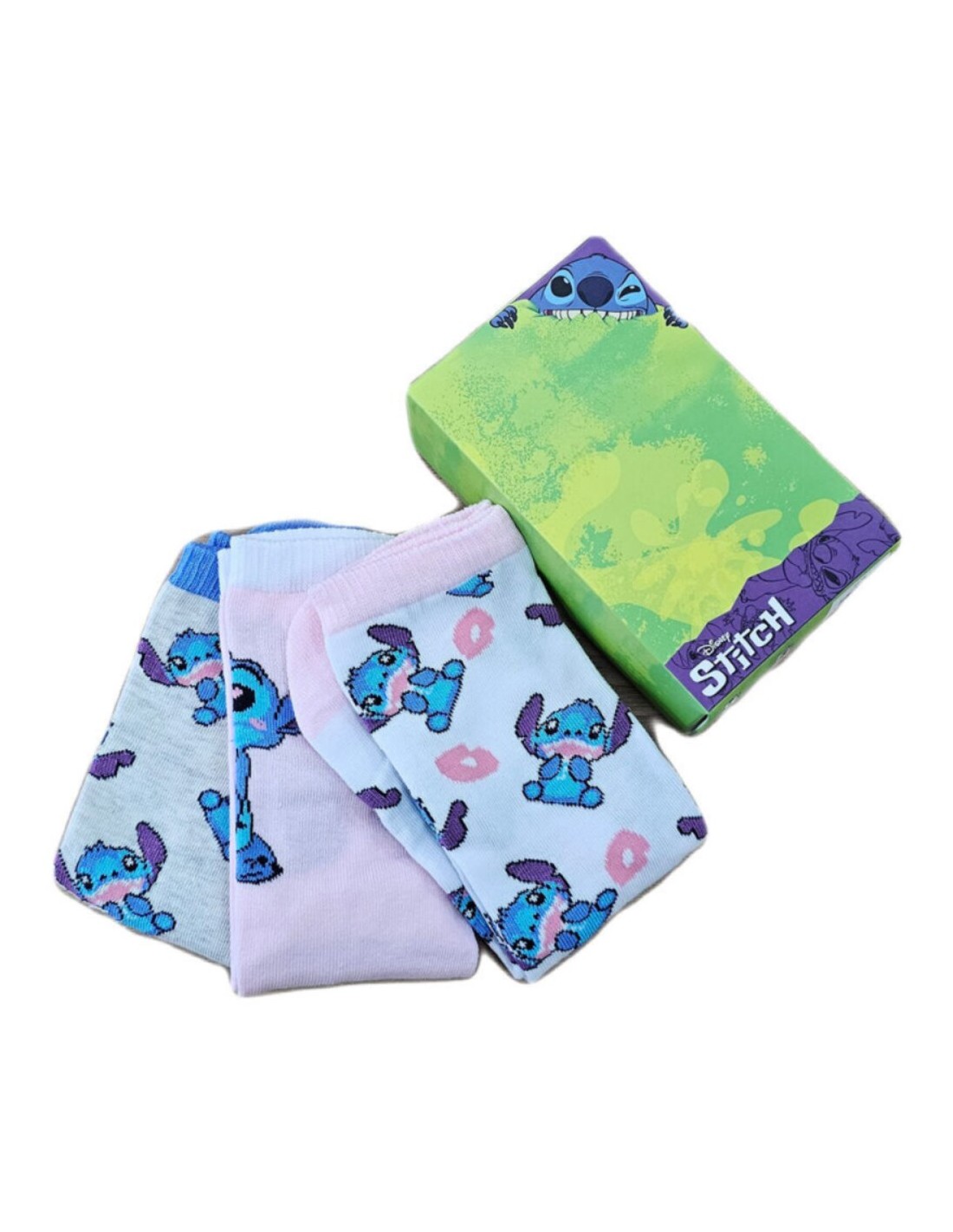 Cada pack incluye tres pares de calcetines, cada uno con un diseño único inspirado en Lilo & Stitch. Puedes disfrutar de diferentes patrones y colores que capturan la esencia de la película.