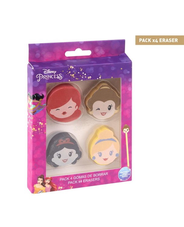 Este pack incluye cuatro gomas de borrar con forma de las icónicas princesas de Disney: Bella, Blancanieves, Cenicienta y Ariel. Cada una de ellas está detalladamente diseñada para capturar la esencia y la belleza de estas queridas protagonistas de los cuentos de hadas.
