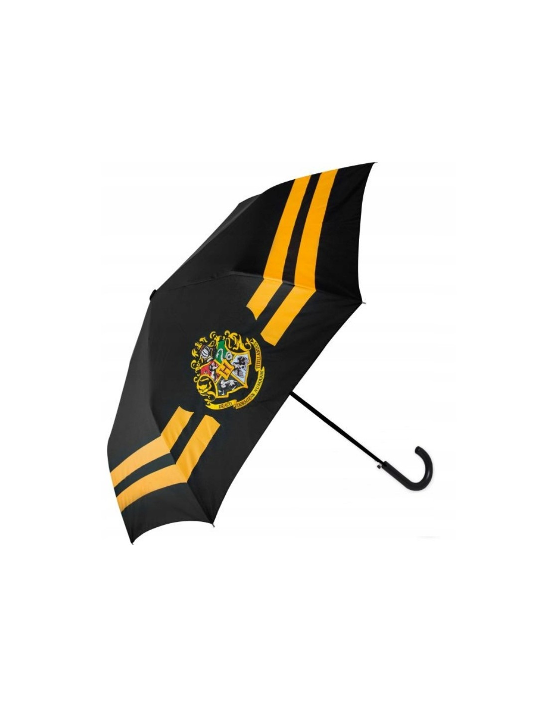 Como el emblema de las cuatro casas de Hogwarts y el famoso lema "Draco dormiens nunquam titillandus" (Nunca hagas cosquillas a un dragón dormido). Con su tamaño y estructura adecuada para niños, este paraguas es fácil de manejar y transportar.