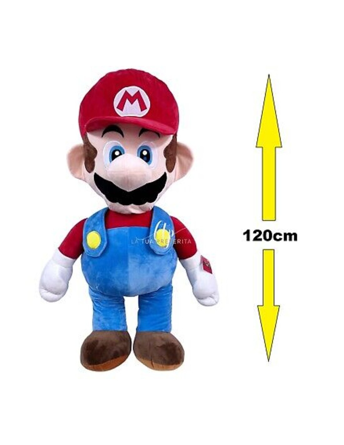 Con una altura de 120 cm, este peluche no solo es un juguete, ¡es una pieza central! Perfecto para abrazar mientras juegas tus juegos favoritos de Mario Bros o como un elemento decorativo para dar vida a tu espacio de juego, Mario estará siempre listo para compartir aventuras contigo.