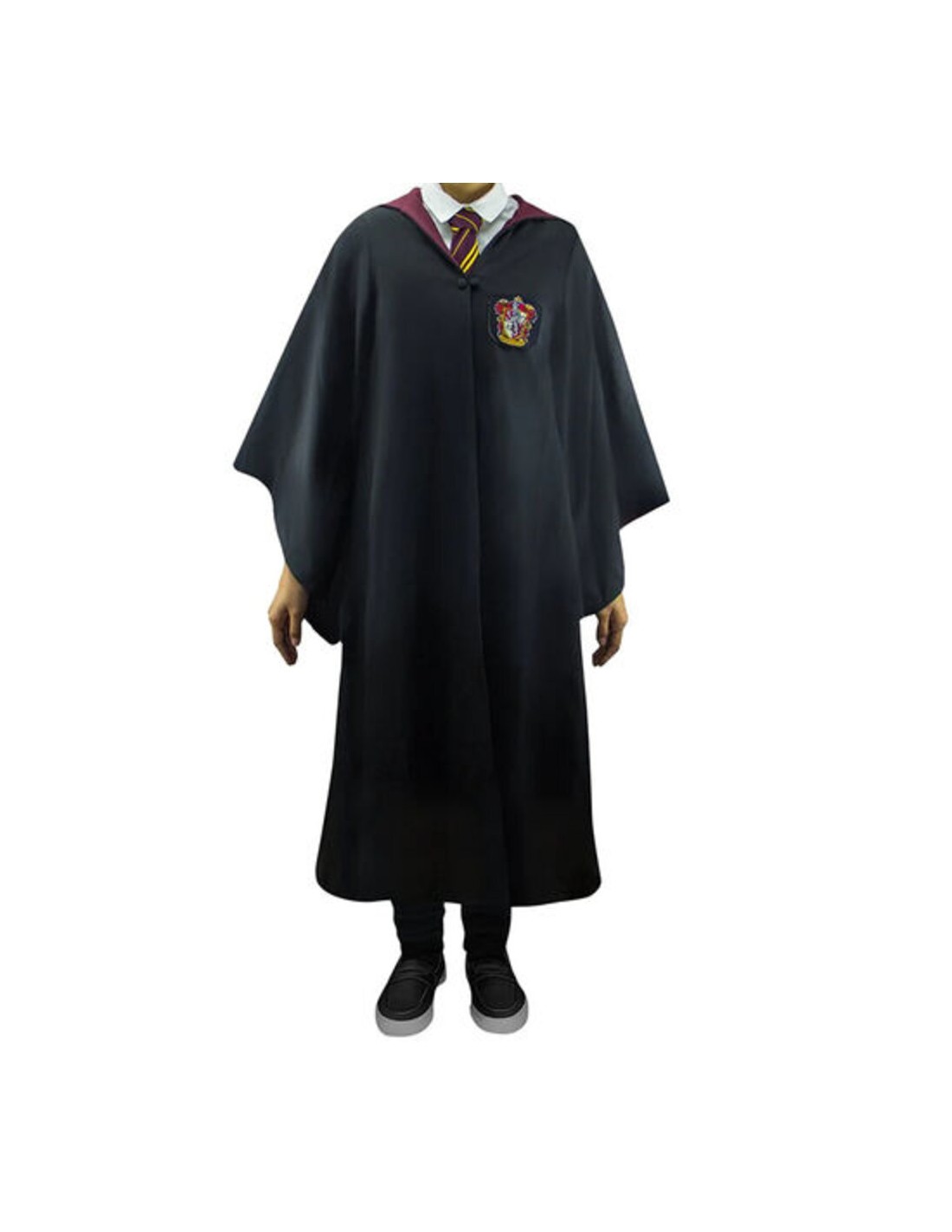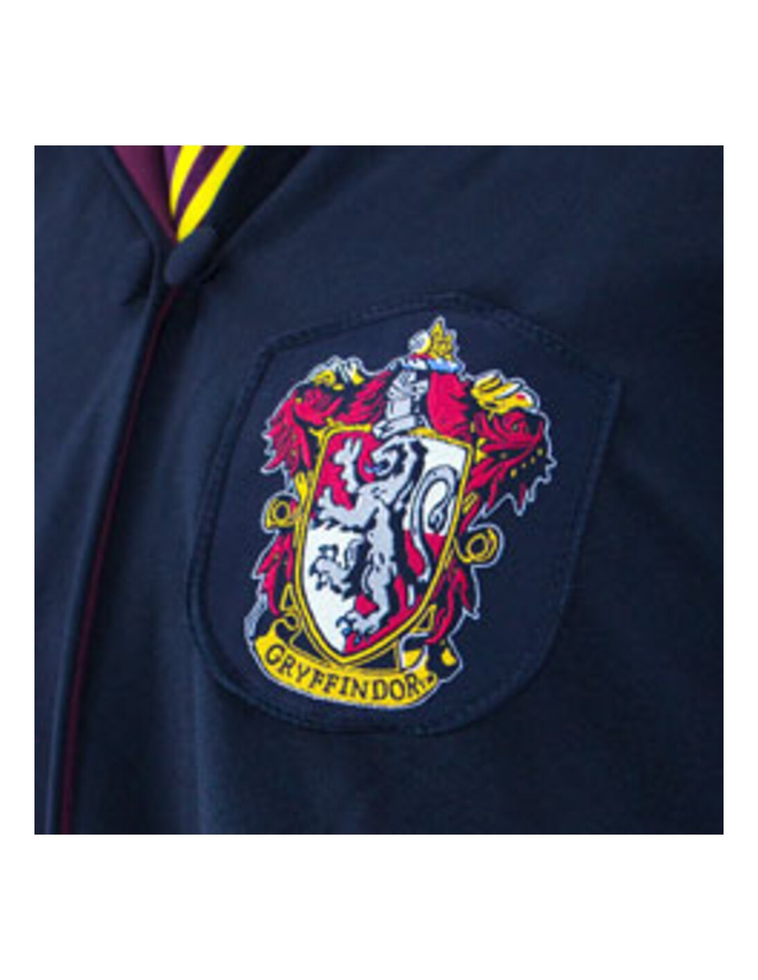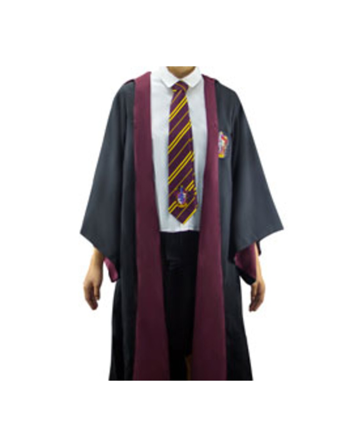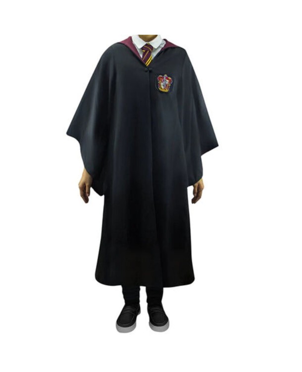 La túnica presenta los colores y el emblema distintivo de Gryffindor, con su león rampante. Cada detalle, desde los bordados hasta los ribetes, ha sido cuidadosamente recreado para capturar la esencia de la casa de Gryffindor.