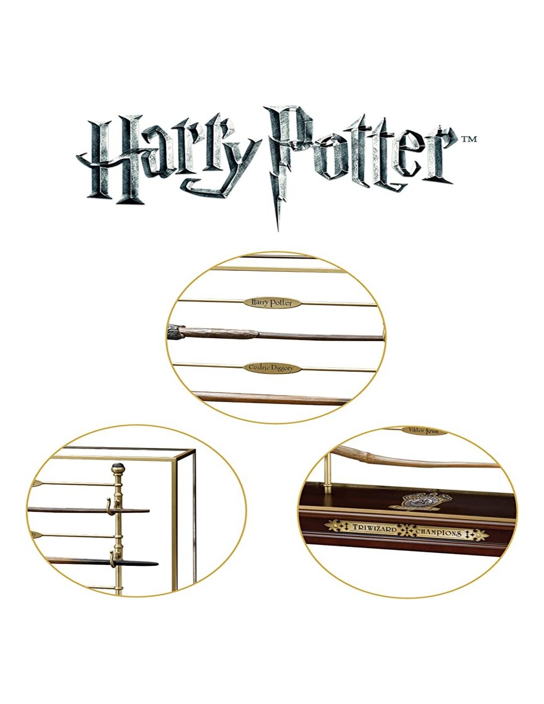 El set de 4 varitas Harry Potter Torneo Triwizard es un artículo imprescindible para los fanáticos de la saga. Cada varita está finamente detallada y representa a uno de los personajes principales de la competición. Las varitas están fabricadas con materiales de alta calidad, lo que les da una sensación auténtica al sostenerlas en la mano. Además, cada varita viene con una caja de presentación de lujo con el escudo del colegio de Hogwarts, lo que las hace ideales para regalar a cualquier fan de Harry Potter. Este set es el complemento perfecto para cualquier colección de varitas mágicas y es una forma única de revivir la emoción del Torneo de los Tres Magos en casa. Las medidas aproximadas de cada varita son de 36 cm de largo y la caja de presentación mide alrededor de 42 cm de largo, 16 cm de ancho y 5 cm de alto.