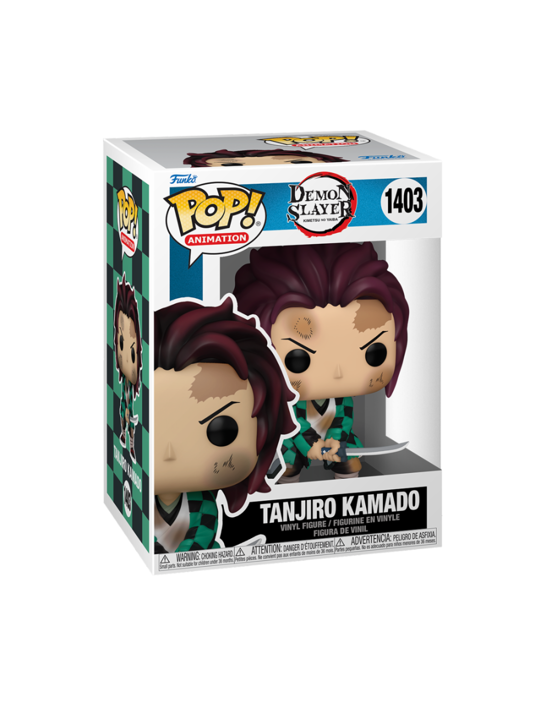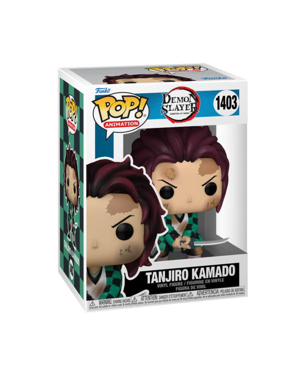 La figura muestra a Tanjiro Kamado en su icónica pose de combate con su espada Nichirin Blade desenvainada. Cada detalle de su atuendo y su espada está meticulosamente representado, capturando la apariencia del personaje con precisión.
