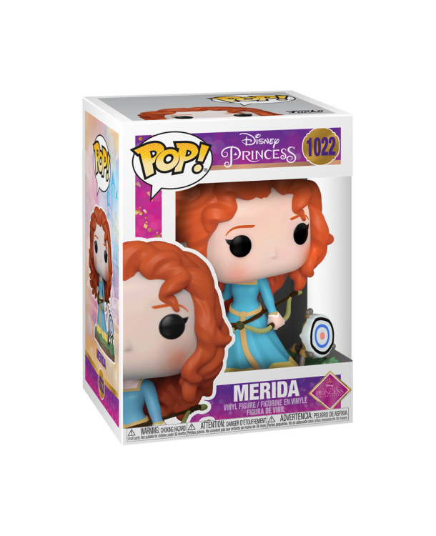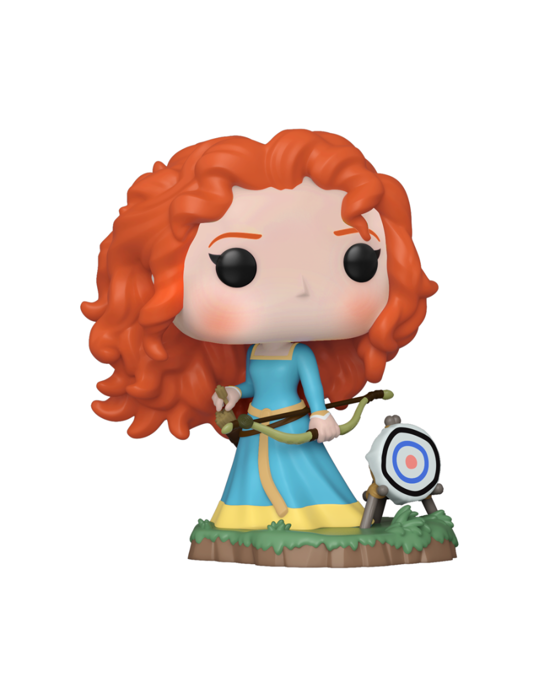 La figura muestra a Mérida en su icónico atuendo de arquera, con su cabello pelirrojo y su arco y flecha en mano. Su expresión decidida y valiente refleja su espíritu independiente.