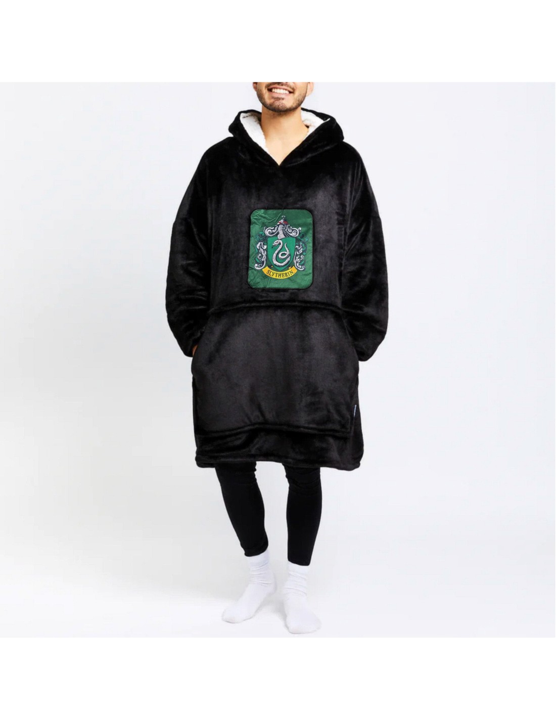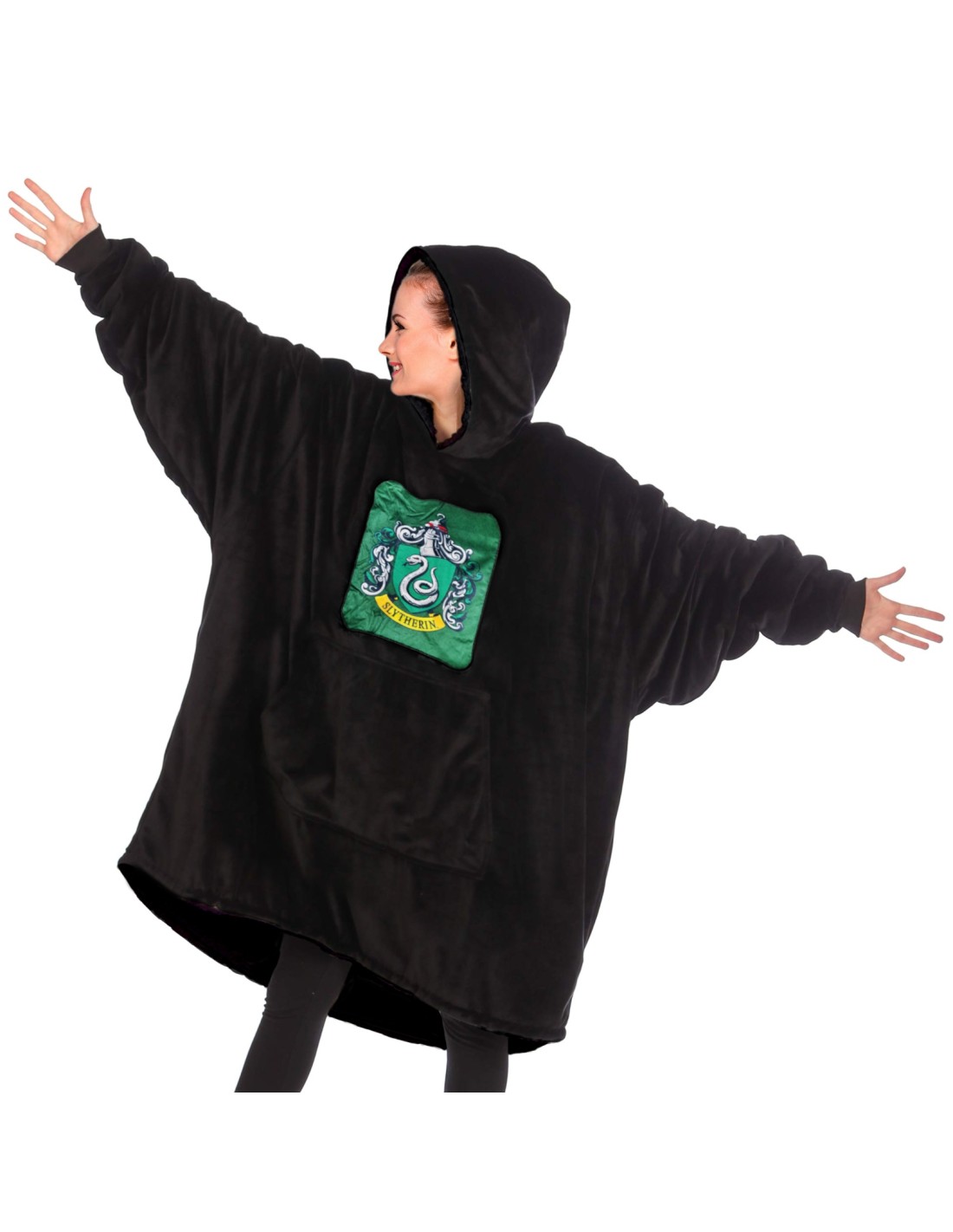 Diseñado en talla única para adultos, este poncho oversize combina comodidad y estilo. Te envolverá en una calidez reconfortante, ideal para las noches mágicas y frescas, mientras exhibes con elegancia tus colores de Slytherin.