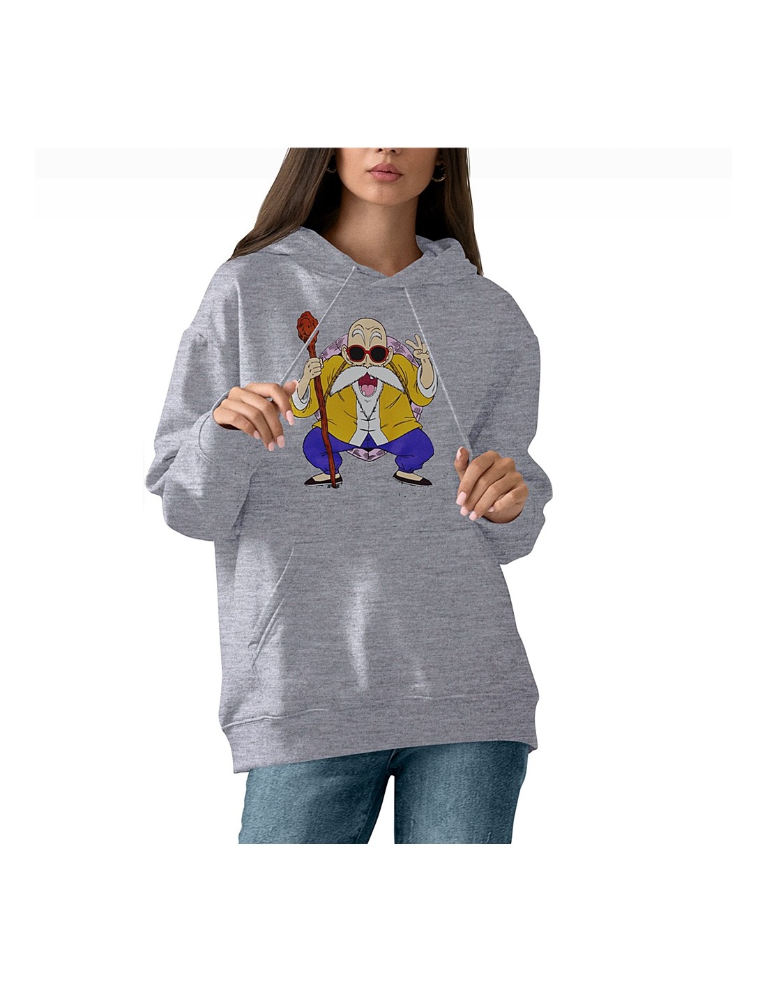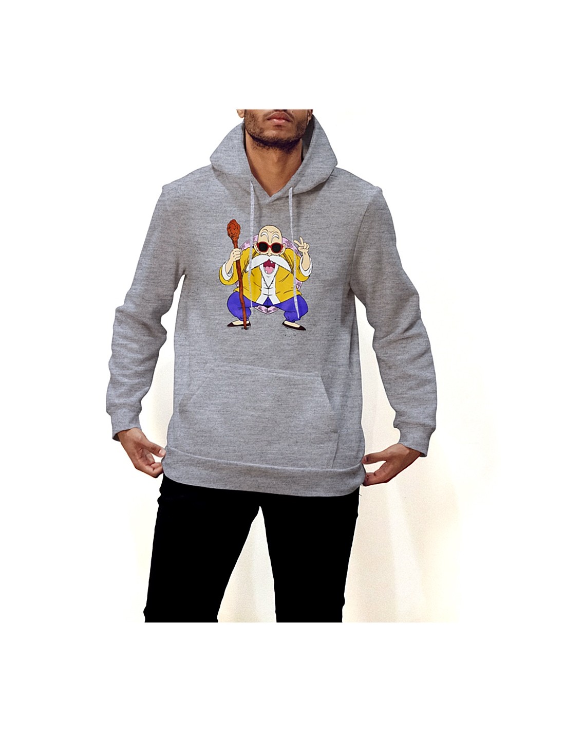 ¿Eres fanático de Dragon Ball? Ahora puedes lucir la imagen de Muten Roshi, el querido maestro y sabio de la serie, en tu estilo diario. Esta sudadera exclusiva de Espectarium te permite agregar un toque de sabiduría y aventura a tu vestuario.
