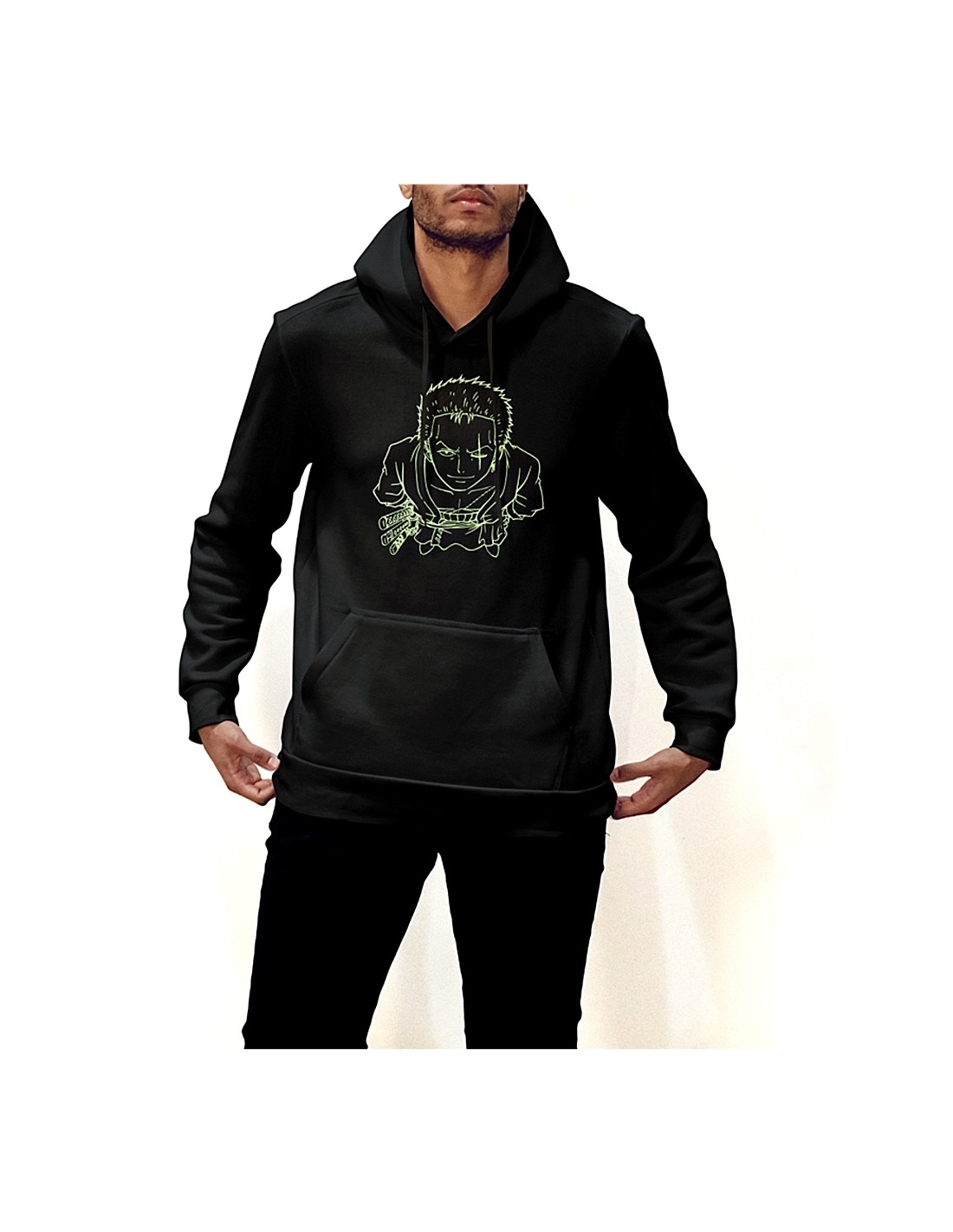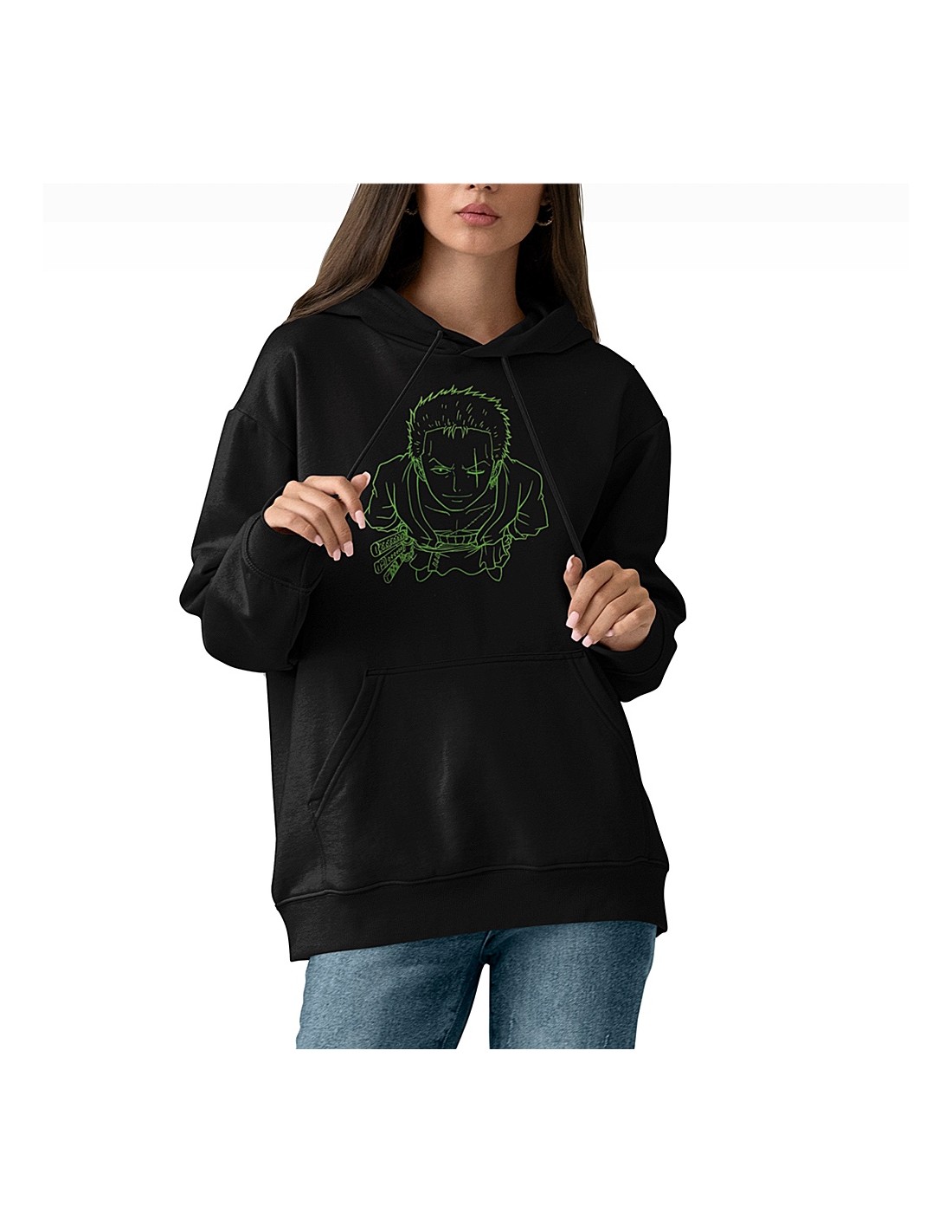 Diseñada pensando en los verdaderos fanáticos de One Piece, esta sudadera es un tributo al carismático Zoro. Llevarla es una manera de mostrar tu amor por la serie y conectarte con otros seguidores.